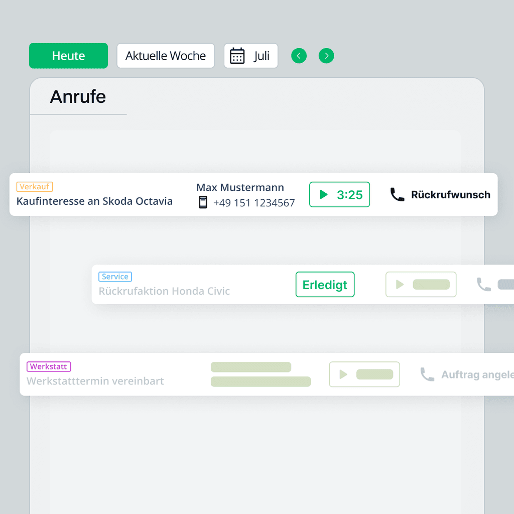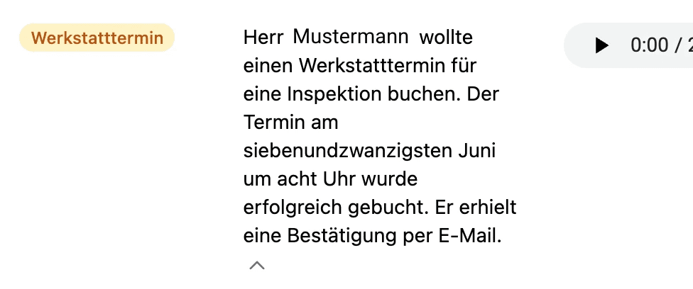Monky fasst jedes Gespräch sofort nach Abschluss für dich zusammen und arbeitet die wesentlichen Informationen für deine Kollegen auf. Jeden Anruf kannst du dir nachträglich anhören, falls du offene Punkte oder alle Details zum Anrufer benötigst.